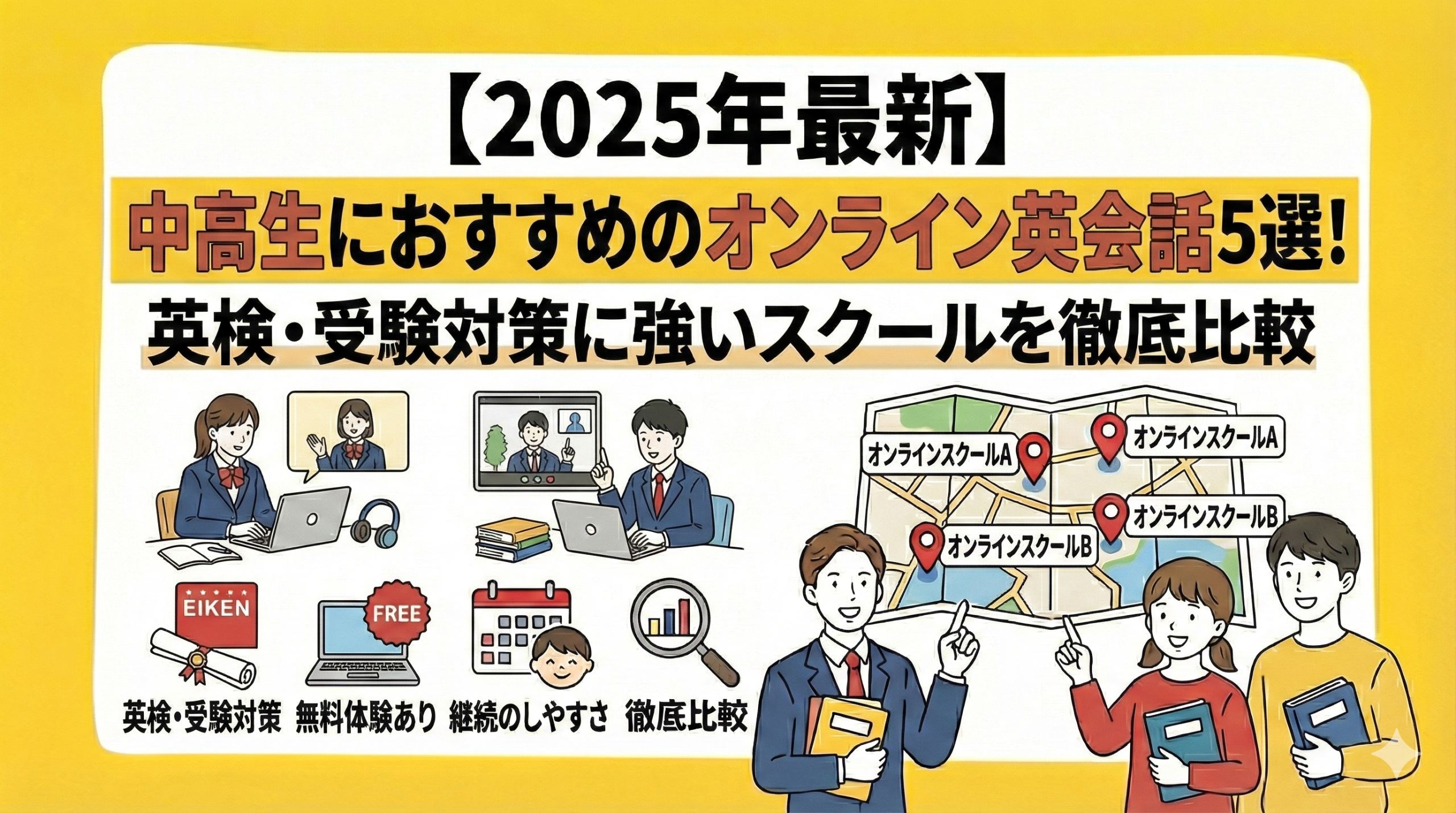 本記事では、中高生に特化したオンライン英会話5校を、「英検・受験対策の専門性」「料金と継続のしやすさ」「講師の質とサポート体制」の3点から徹底比較します。保護者の皆様と生徒本人が納得して選べるよう、客観的な情報に基づいて解説します。