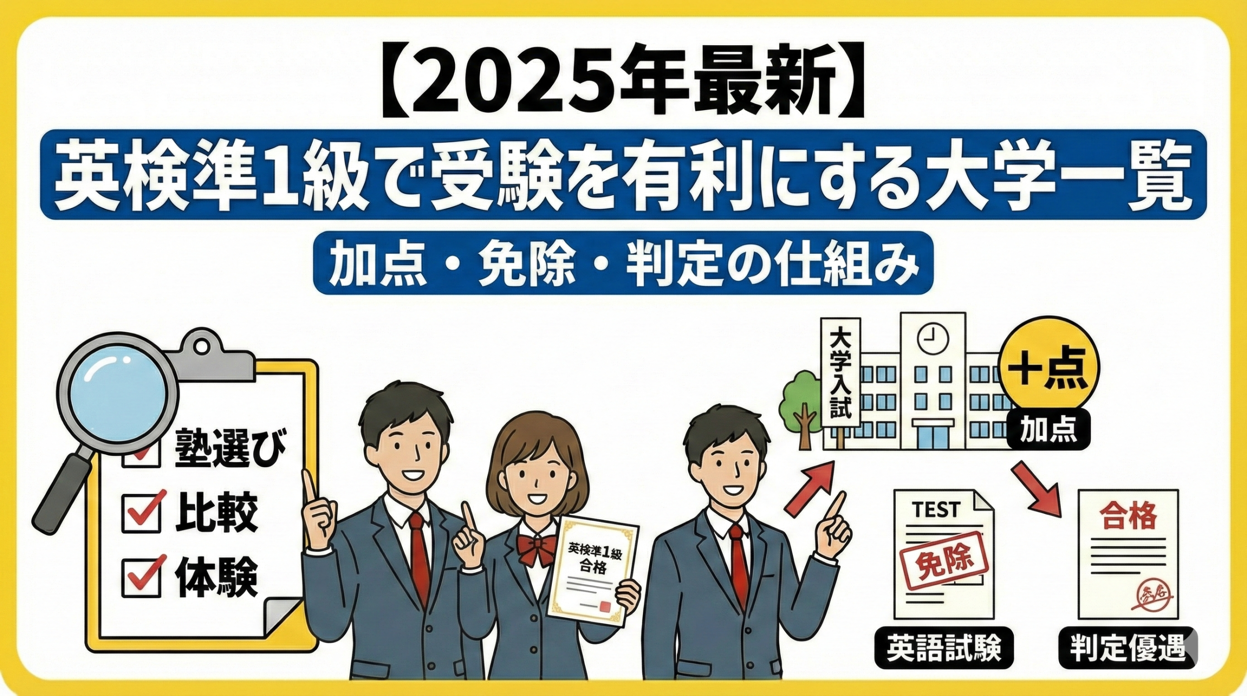 本記事では、最新の2025年度入試情報に基づき、英検準1級の優遇措置の仕組みと、具体的な大学・学部の一覧を、客観的かつ論理的に解説します。この記事を読み終える頃には、あなたの受験戦略は明確になっているはずです。