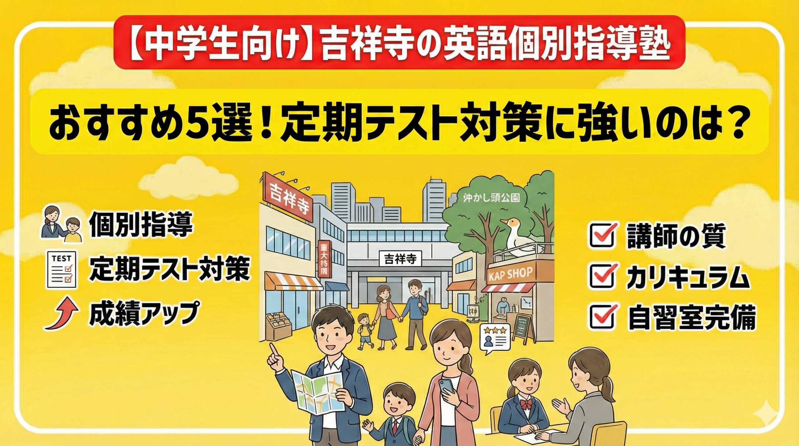 この記事では、吉祥寺エリアの中学生向け英語個別指導塾の選び方、定期テスト対策に強い塾の特徴、そして目的別のおすすめタイプを解説します。具体的な塾名や料金については、最新かつ正確な情報を得るため、必ず各塾の公式サイトをご確認いただくことを前提に、塾選びの判断基準を提供します。