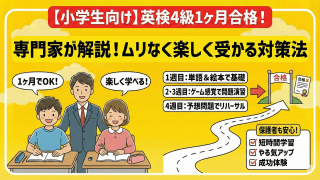 英検4級合格を目指す小学生の皆さん、そして保護者の皆様、こんにちは。 「英検4級に挑戦したいけれど、勉強時間が足りない」「1ヵ月後の試験に間に合わせたい」と焦っていませんか? この記事は、英検4級に最短1ヵ月で合格するための、最も効率的な対...