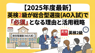「英検2級は、大学受験で本当に役立つのだろうか?」「総合型選抜(旧AO入試)で英検2級を持っていると、どの程度有利になるのだろうか?」 高校生やその保護者の皆様は、このような疑問をお持ちではないでしょうか。 特に、近年重要性が増している総合...